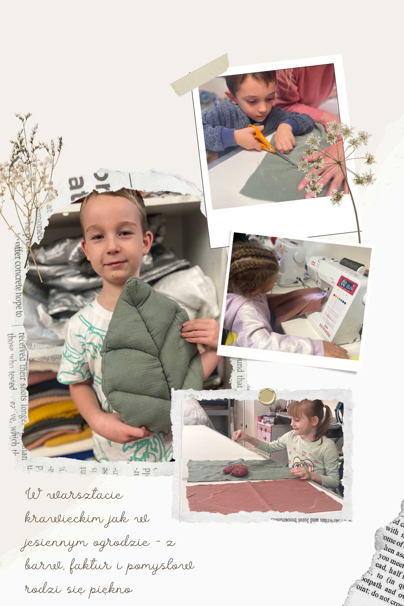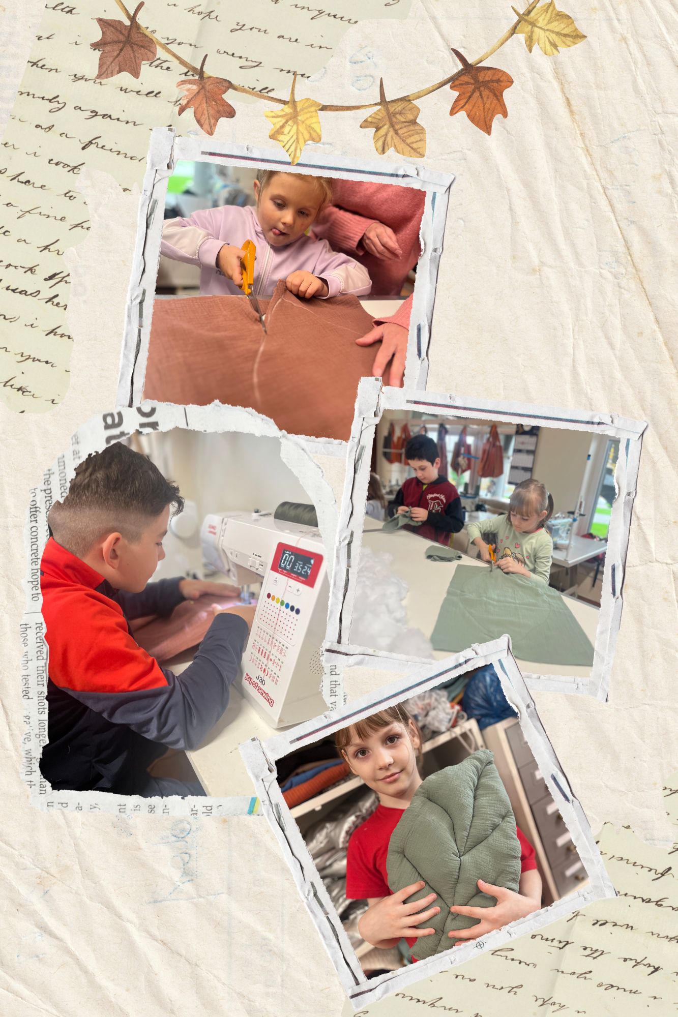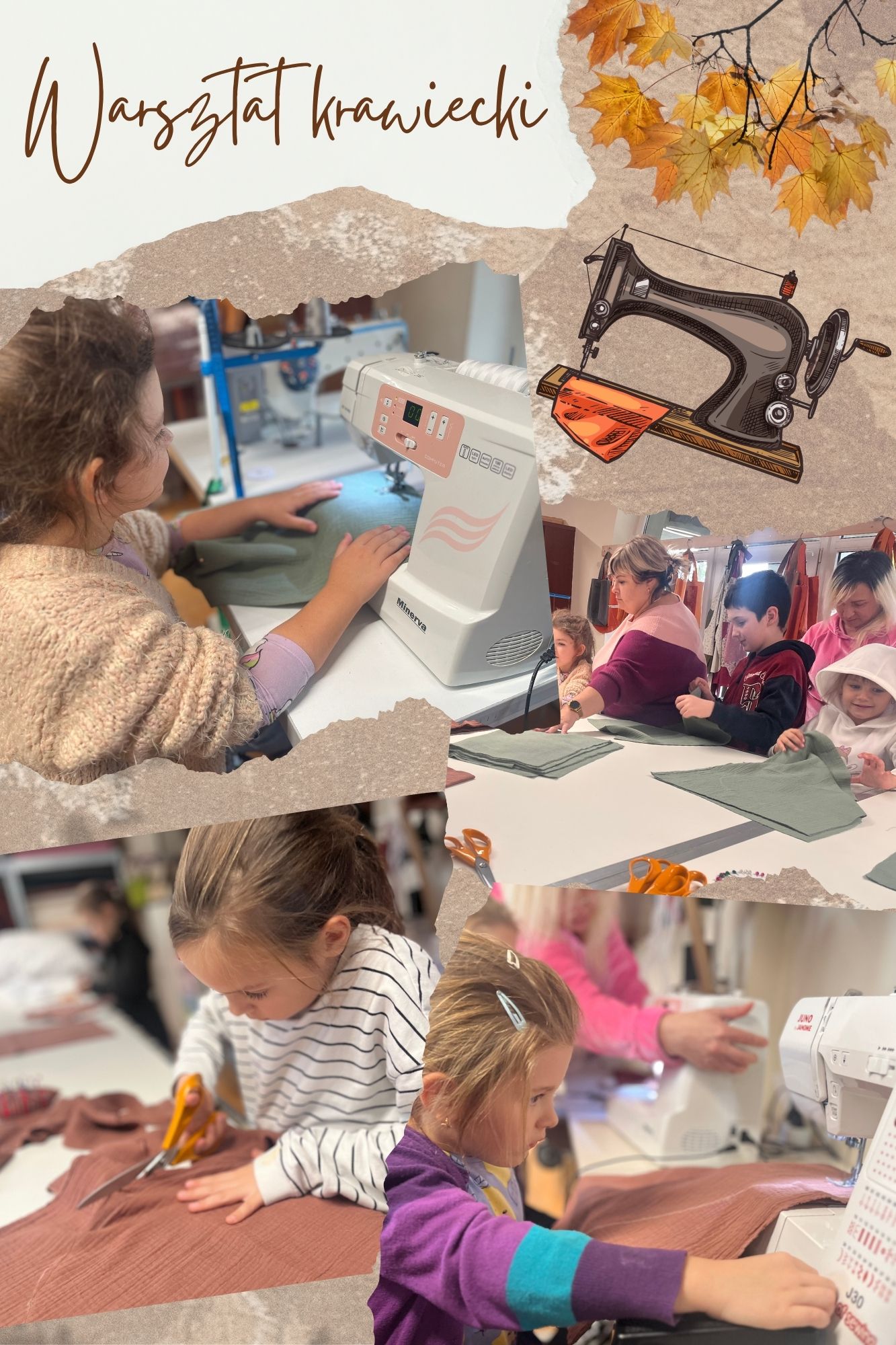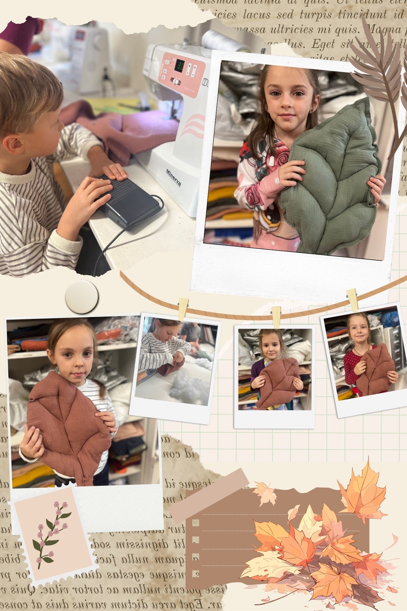 Warsztat wypełnił się szelestem materiałów, dźwiękiem maszyn i jesiennymi barwami – a każdy liść był wyjątkowy, tak jak jego mały twórca