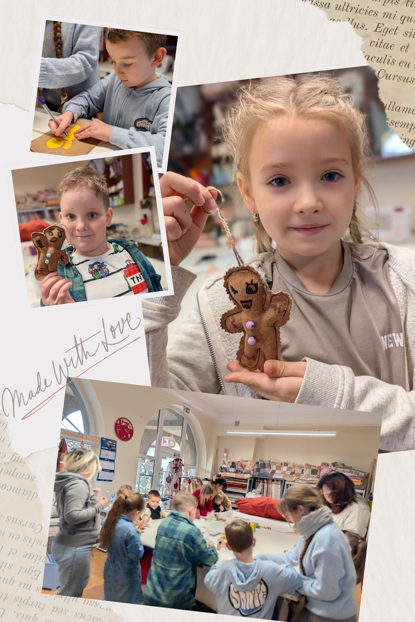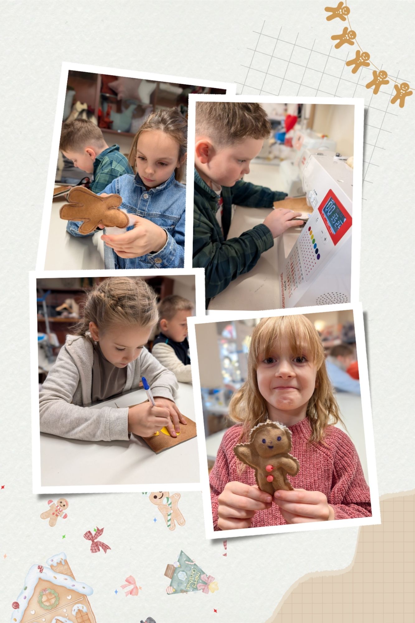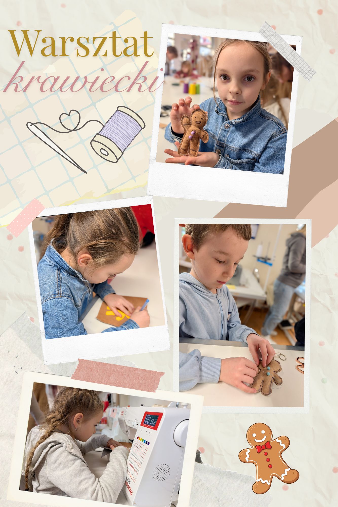 Podczas ostatnich warsztatów krawieckich dzieci zamieniły się w prawdziwych małych twórców. Krok po kroku powstawały urocze ciasteczkowe ludziki, które na końcu stały się wyjątkowymi brelokami.