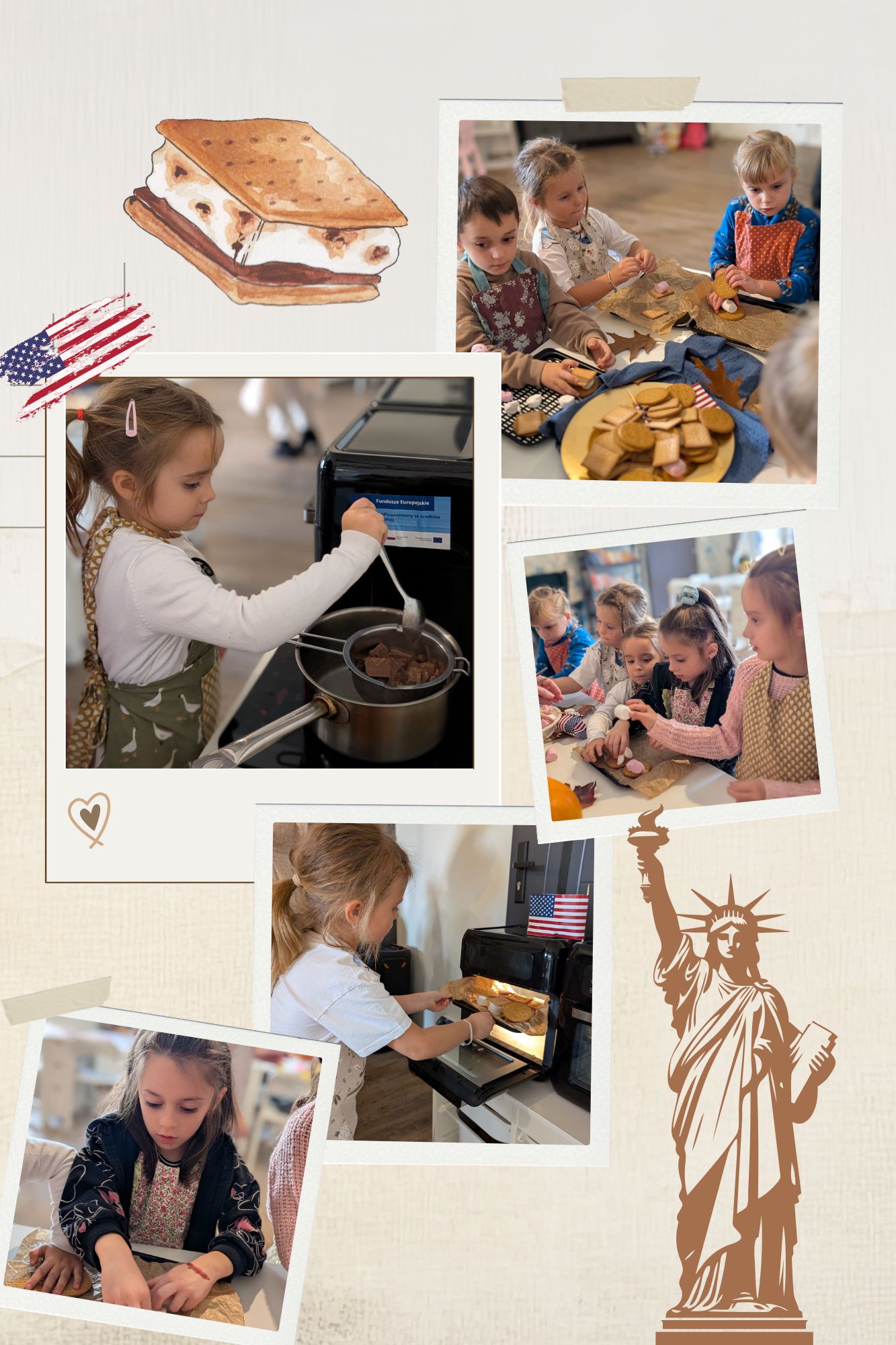 Podczas tych zajęć poznawaliśmy ulubione przysmaki zza oceanu, a na słodkie zakończenie nie mogło zabraknąć kultowego s’mores – połączenia herbatników, pianek i czekolady, które podbiło nasze serca (i podniebienia!).